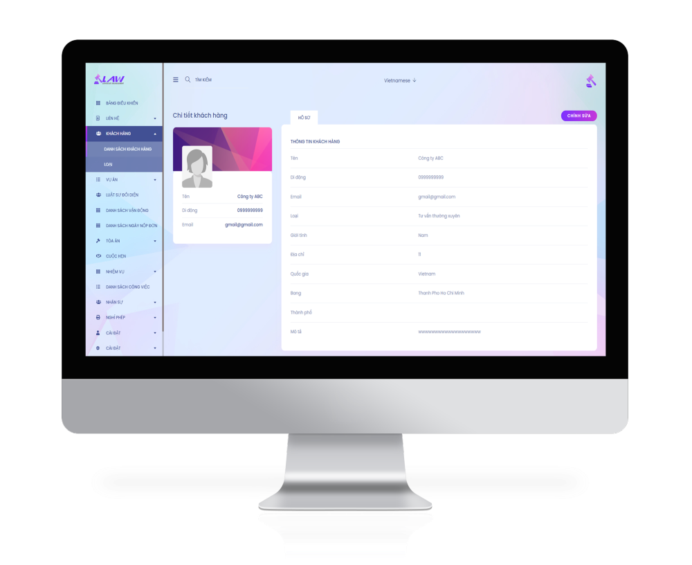 - Lưu trữ đầy đủ thông tin khách hàng, lịch sử tư vấn và các vụ việc liên quan.