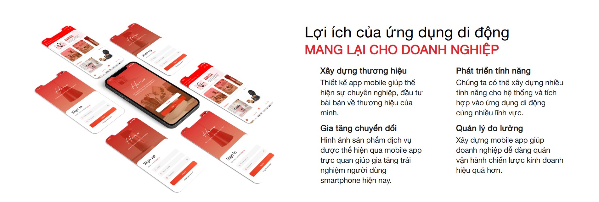 Chúng tôi tạo ra những ứng dụng có giao diện đẹp mắt và dễ sử dụng, mang lại trải nghiệm người dùng tuyệt vời, giúp thu hút và giữ chân khách hàng và tạo ra giá trị cho doanh nghiệp trong thời gian dài.