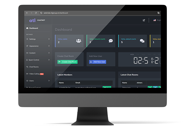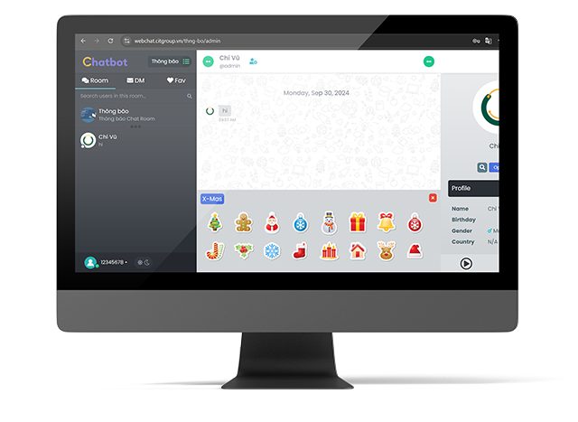 Hệ thống cung cấp bảng điều khiển quản trị giúp quản lý toàn bộ người dùng, phòng trò chuyện, giao diện và các cài đặt của hệ thống. Quản trị viên có thể dễ dàng điều chỉnh các thiết lập theo nhu cầu.