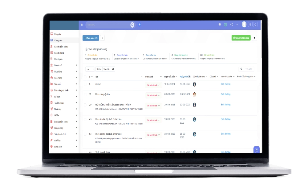 - Phân công nhiệm vụ cho từng nhân viên hoặc nhóm.